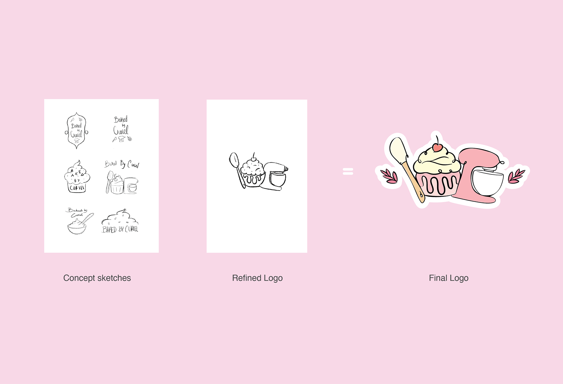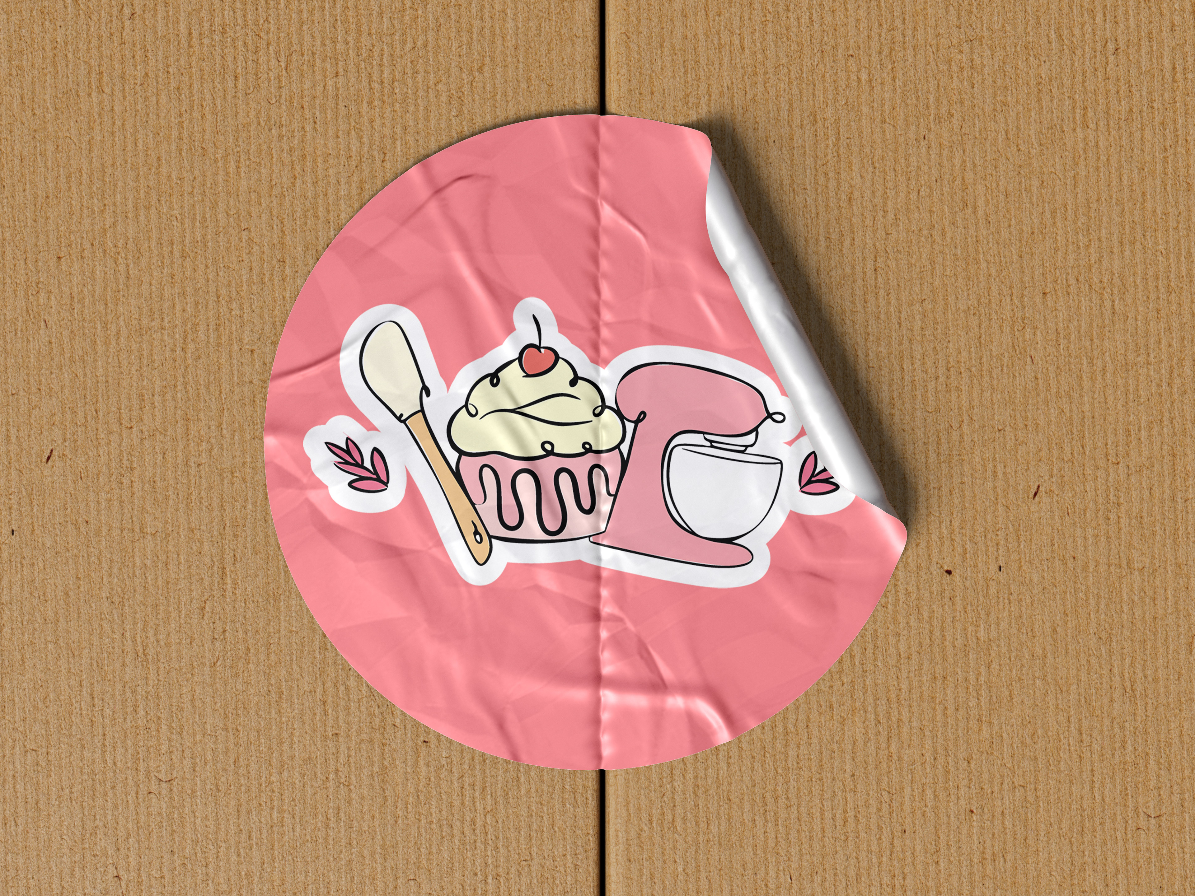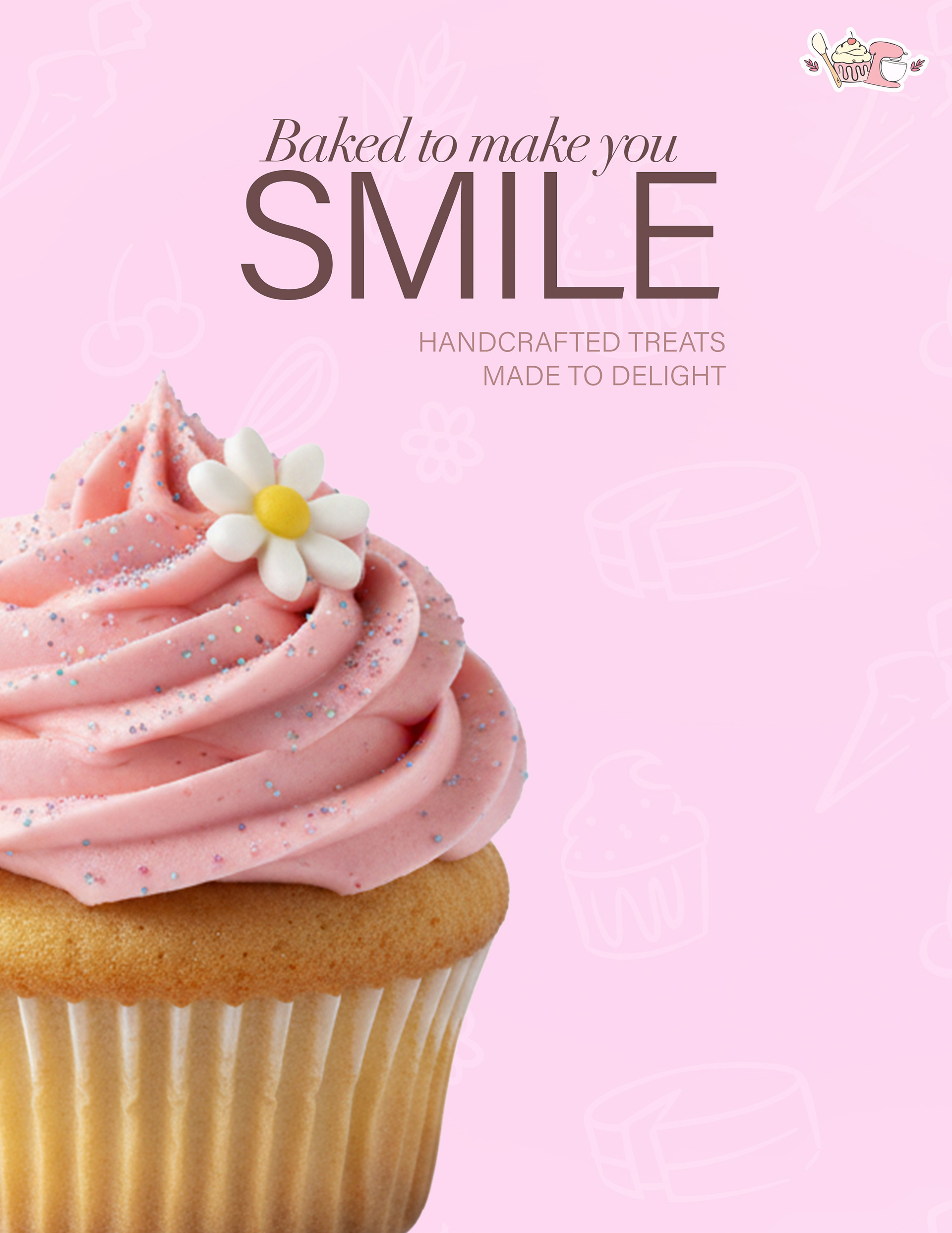Primary brand mark combining baking tools and a cupcake illustration to reflect the warmth and personality of the bakery.
