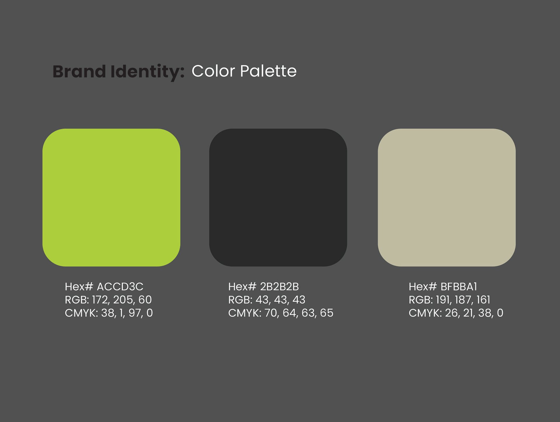 Bright lime green represents energy and movement while neutral tones balance the identity with a modern athletic feel.