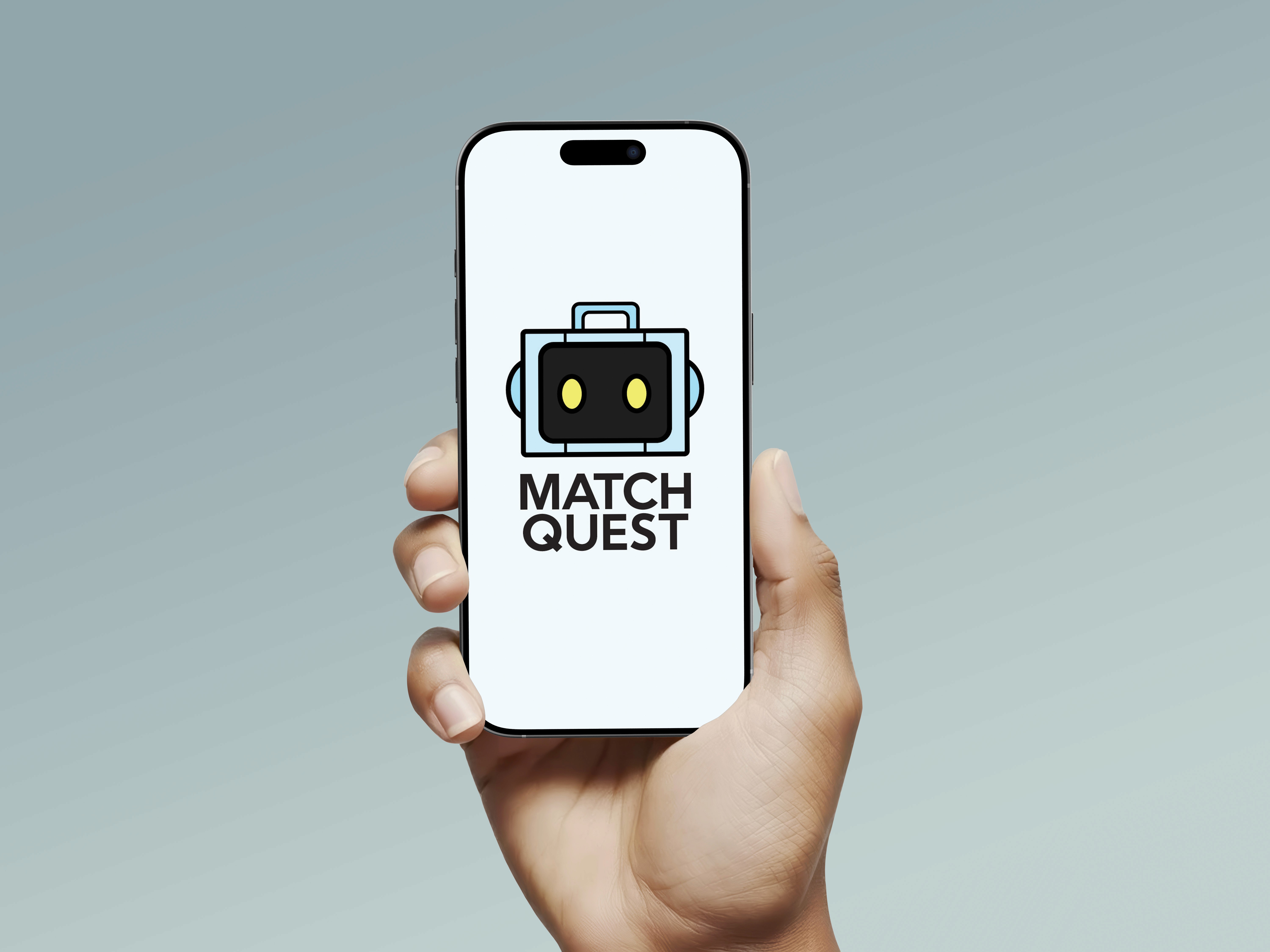 For MatchQuest, the logo blends a robot, symbolizing tech-driven networking, with a suitcase, representing professionalism and opportunity. This fusion creates a distinctive character that embodies the company’s focus on partnership, connection, and business, balancing a playful personality with a clear, purposeful message.